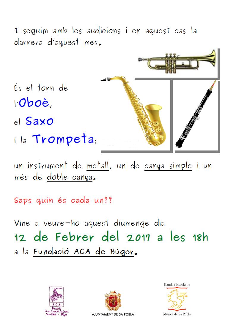 Audició d’Oboè, Saxo i Trompeta, a ACA