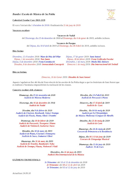 por Administrador | Sep 9, 2018 | Calendaris Escolars, Curs 2018 - 2019, Informació del Curs actual i Anterior