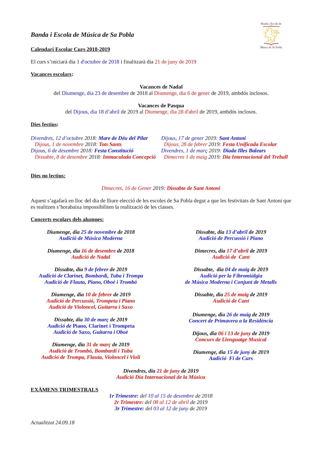 Podeu trobar més informació a la «Agenda de la Banda» o a la «Agenda de l’Escola»