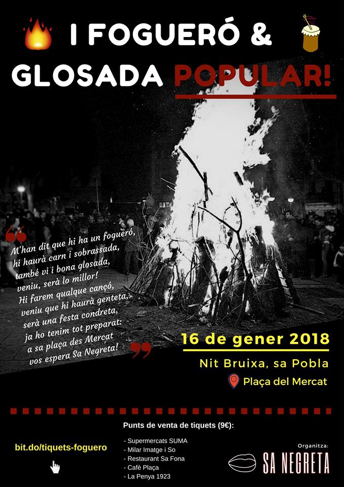 I sabeu una cosa? El col·lectiu Sa Negreta organitza un fogueró i una glosada popular a la plaça del mercat i els músics de la banda tampoc no ens ho volem perdre… Hi participarem encantats! Estau atents a les sorpreses! 😉