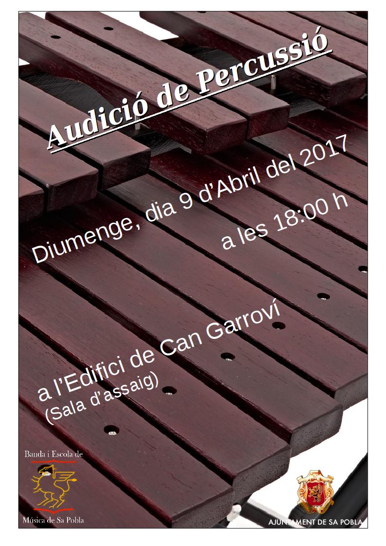 Abans d’agafar les vacances de Setmana Santa tendrem uns dies molt ocupats. En primer lloc anirem a Petra amb les bandetes, seguirem amb l’Audició de Percussió que realitzarem a l’Escola de Música de Sa Pobla i el dimecres sant acabarem l’avaluació amb l’audició de Flauta, Trompa i Guitarra a Crestatx.