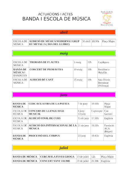 En compliment d’allò dispost en l’article 21 de la Llei 34/2002 de servei de la societat de la informació i comerç electrònic, si vostè no desitja rebre més informació ni comunicacions, es pot donar de baixa enviant un correu electrònic a l’adreça electrònica musica.sapobla@gmail.com, indicant com a assumpte “BAIXA”.