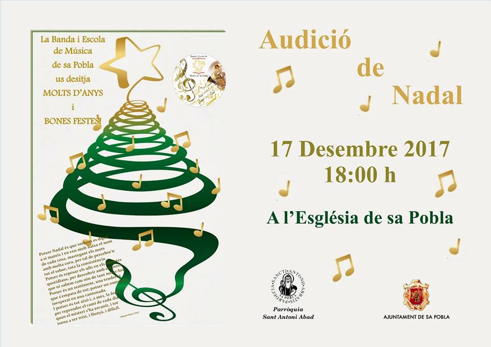 Ahir capvespre l’Escola de Música celebrà la seva audició de Nadal. Des dels més alumnes més petits als més grans, grups d’instruments, cant, música moderna i bandetes… oferiren un concert alegre i entretengut, no només de nadales, sinó també de peces clàssiques i més actuals.