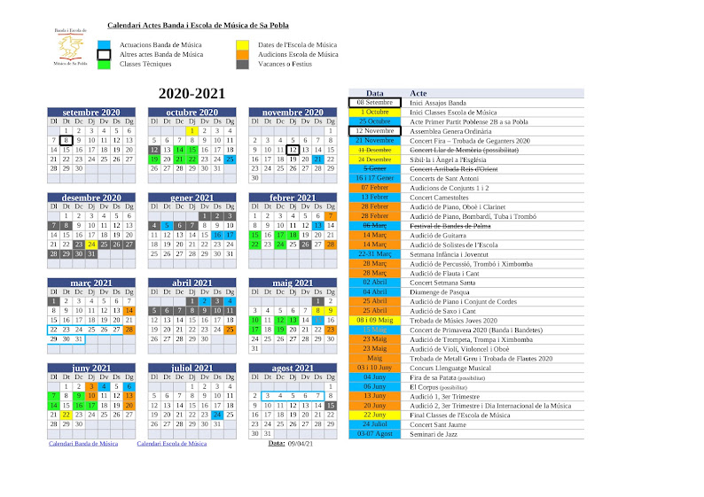 Podeu trobar més informació a la «Agenda de la Banda» o a la «Agenda de l’Escola»