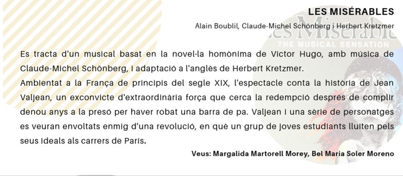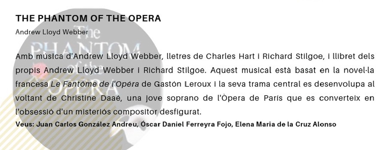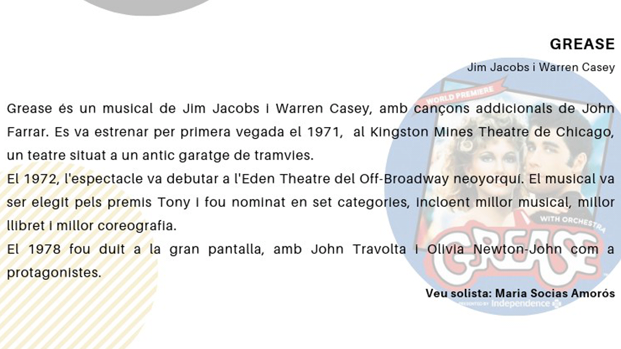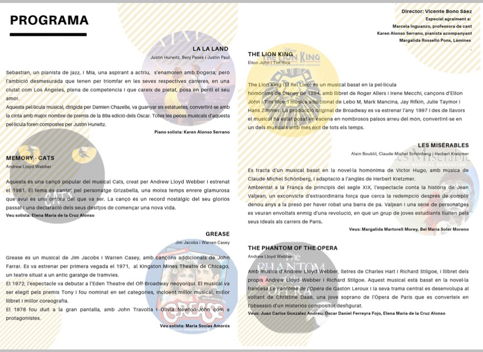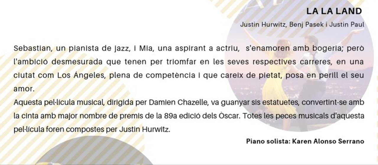 - Diumenge 7 d’abril a l’església, actuaran els alumnes de trombó, bombardí i tuba (17h) i trompa, flauta i violoncel (19h).