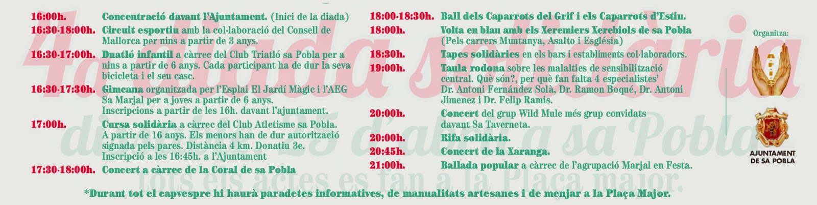 No t’ho perdis! Vine a solidaritzar-te, dissabte de 9 a 21h a Sa Pobla! T’esperam!