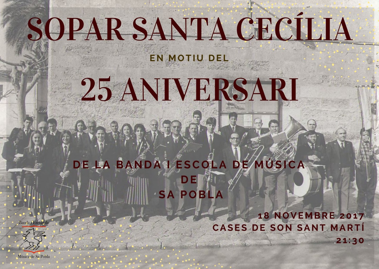 Al setembre del 2017 varem estar de celebració amb els 25 anys de la nostra associació, la «Banda i Escola de Música de sa Pobla» i ho varem celebrar en el tradicional sopar de Santa Cecília que cada any realitzam per aquestes festes.