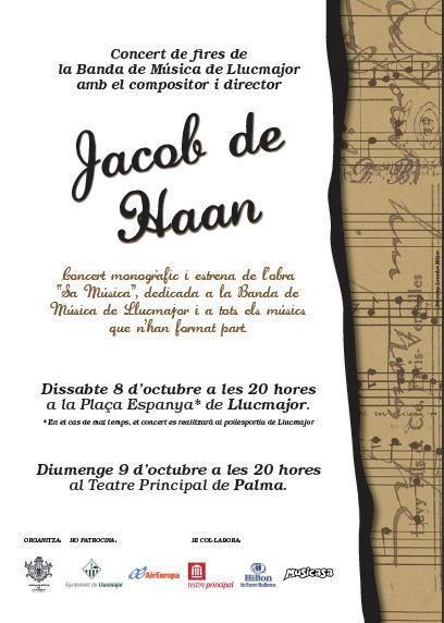 El proper 8 i 9 d’octubre la Banda de Música de Llucmajor celebra un concerts amb el famós compositor i director Jacob de Haan.