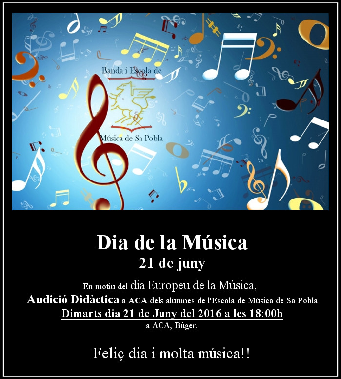 El Dia de la Música o Festa de la Música és una festa europea i internacional, que actualment se celebra en un centenar de països, cada 21 de juny, amb l’inici de l’estiu. Va ser Jack Lang, Ministre de Cultura francès, qui, el 1982, va celebrar-ne la primera edició a França.