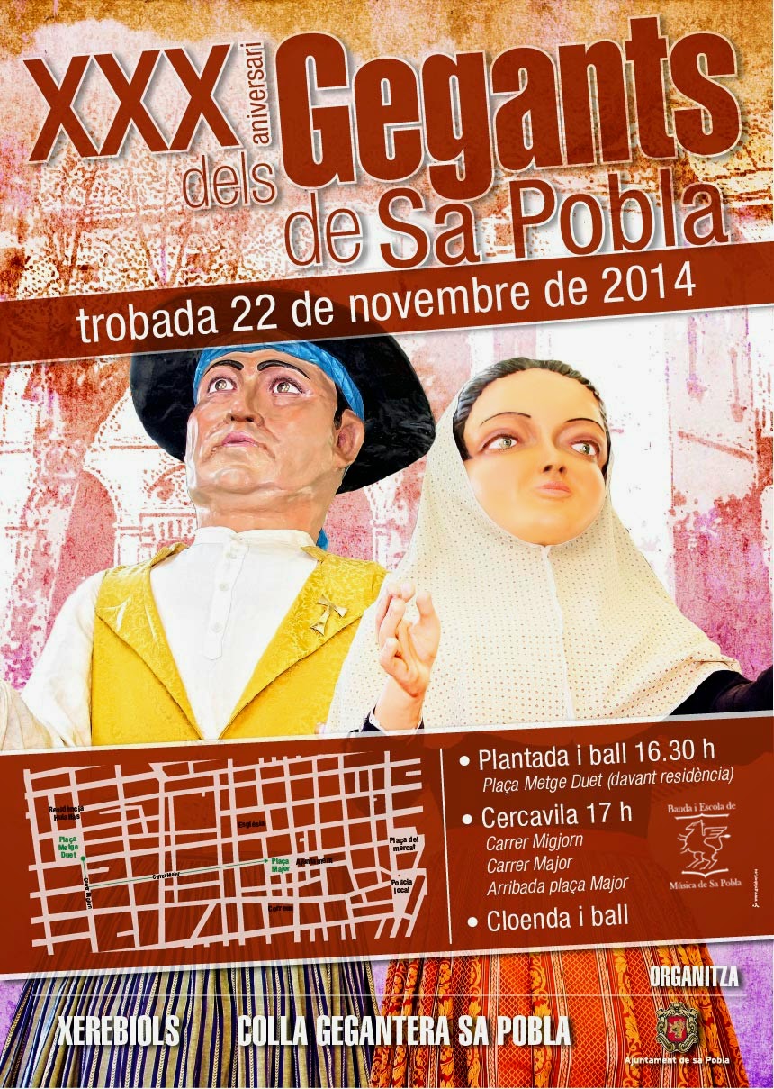 Aquest proper cap de setmana, el dia 22 de Novembre dia de Santa Cecília patrona dels Músics, la Banda de Música de Sa Pobla participa a la XXX Trobada de Gegants de Sa Pobla.