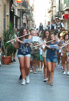 - A la primera foto, esperant el dia de Sant Antoni per acompanyar els caparrots a l’església. I a la segona, el dia de Carnestoltes repassant ses partitures, amb en Joan darrera!!